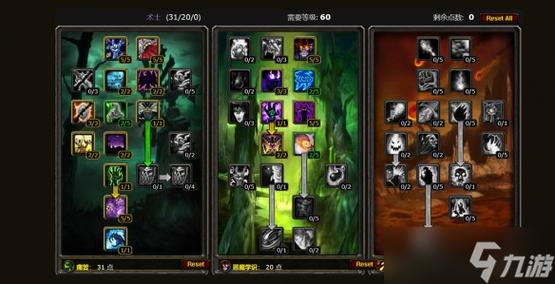 术士天赋 Talents 最低等级要求:70 需要天赋点数:61 痛苦 天赋 - 50 点 镇压 - 等级 5/5 强化腐蚀术 - 等级 5/5 强化吸取灵魂 - 等级 1/2 强化生命分流 - 等级 2/2 灵魂虹吸 - 等级 2/2 强化痛苦诅咒 - 等级 2/2 恶魔专注 - 等级 5/5 诅咒增幅 - 等级 1/1 无情延伸 - 等级 2/2 夜幕 - 等级 2/2 腐蚀增效 - 等级 3/3 暗影之拥 - 等级 5/5 生命虹吸 - 等级 1/1 暗影掌握 - 等级 5/5 传染 - 等级 5/5 黑暗契约 - 等级 1/1 强化恐惧嚎叫 - 等级 2/2 痛苦无常 - 等级 1/1 恶魔学识 天赋 - 11 点 强化治疗石 - 等级 2/2 强化小鬼 - 等级 3/3 恶魔之拥 - 等级 5/5 恶魔支配 - 等级 1/1 个人加点